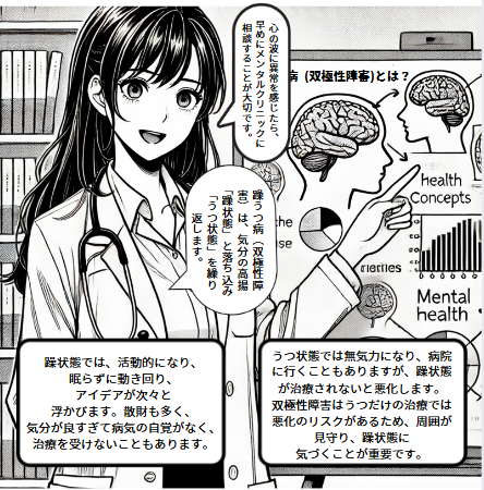 この病気は一見、単なる気分の浮き沈みのように思われるかもしれませんが、実際には脳内の神経伝達物質のバランスに関連する医学的な状態です。感情の変化が非常に大きく、症状が進むと生活に支障をきたすことが多くなります。